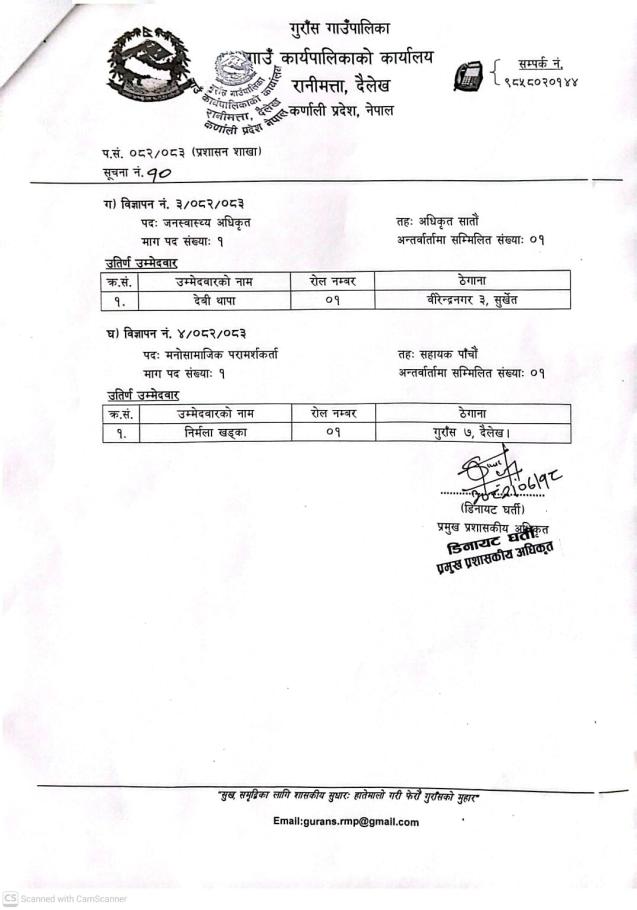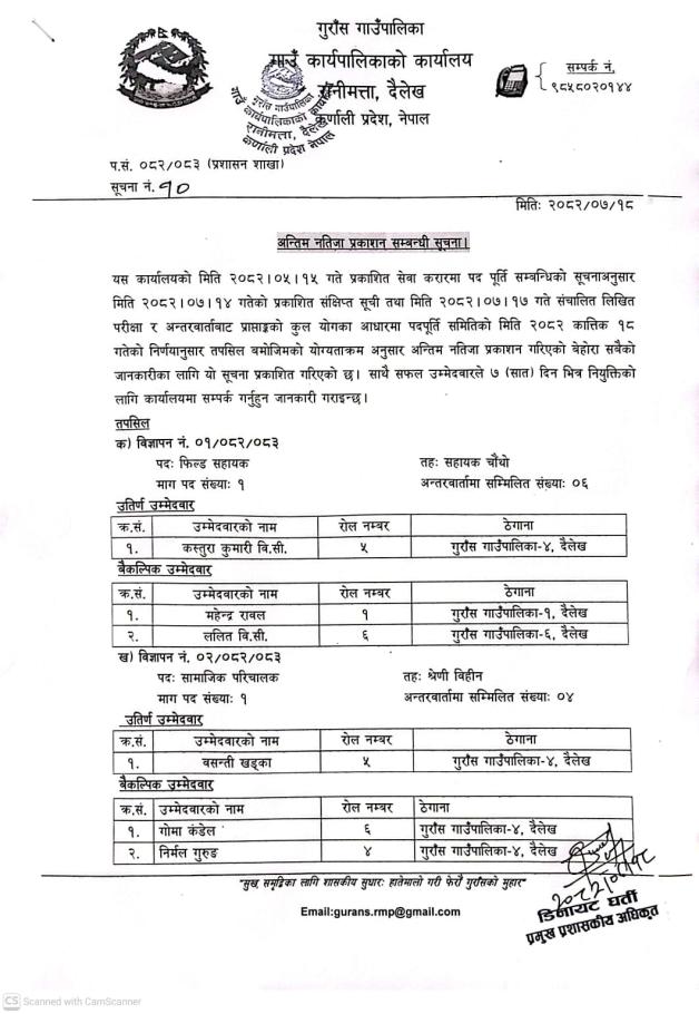 अन्तिम नतिजा प्रकाशन सम्वन्धी सूचना।