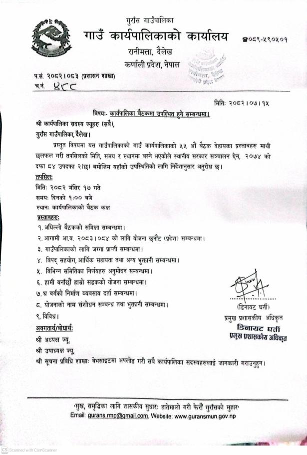 कार्यपालिकाको ५५ औँ बैठकमा उपस्थित हुने सम्बन्धमा ।
