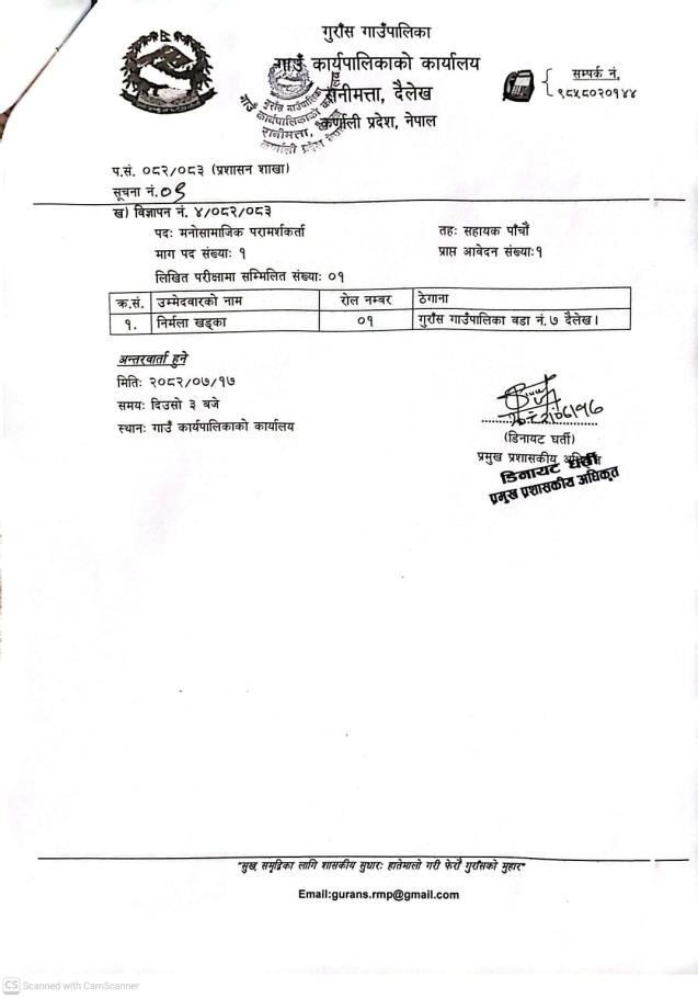 लिखित परीक्षाको नतिजा प्रकाशन सम्बन्धी सूचना ।