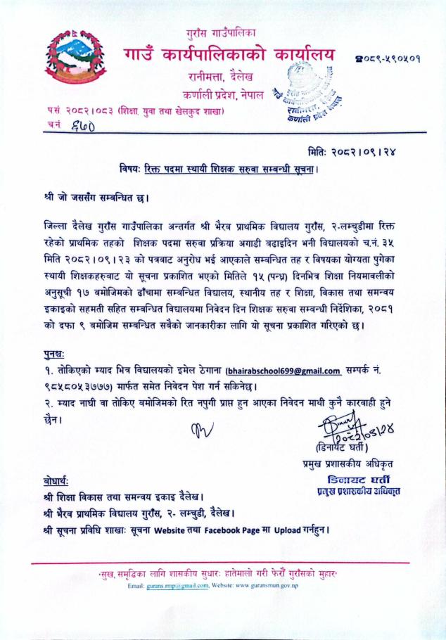 शिक्षक सरुवा सहमति सम्बन्धमा ।
