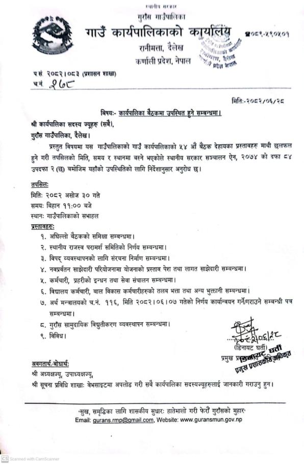 ५४ औँ कार्यपालिकाको बैठकमा उपस्थित हुने सम्बन्धमा ।