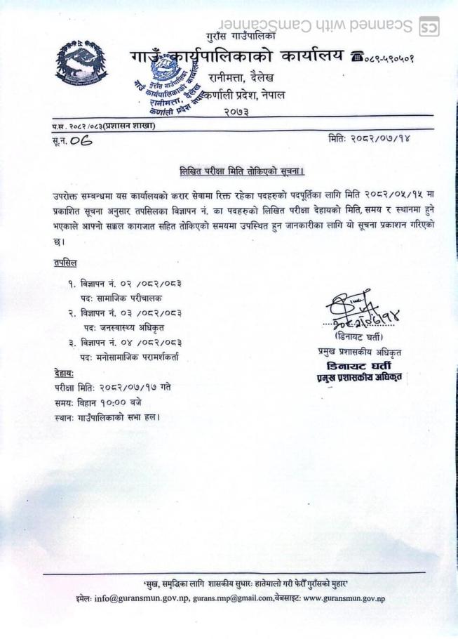 लिखित परिक्षा सञ्चालन समबन्धी सूचना ।