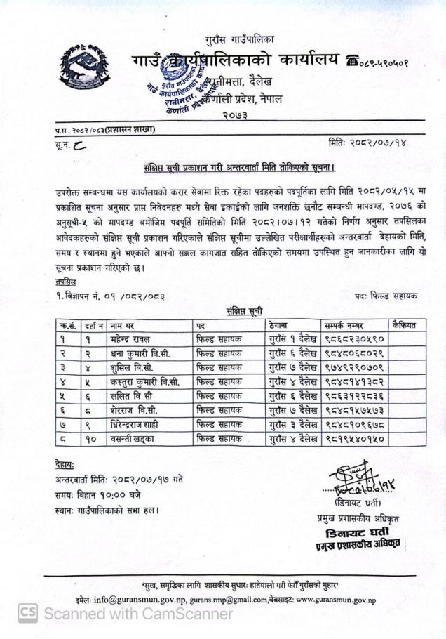 संक्षिप्त सुचि प्रकासन गरि अन्तरबार्ता समबन्धी सूचना ।